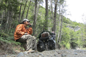 さて、次の目的地であるトルテルという町まではコクランから110km以上離れている。舗装道路ならば、楽勝で辿り着ける距離なのだが、未舗装かつ山道の状況で、一日で走りきるのは厳しい。未舗装&山道って、平地の舗装道路と比べると、倍くらいキツサが違うんですよ。平地の舗装道路って、だいたい100kmを越えた辺りから疲れが出てくるんだけど、未舗装&山道だと、50kmを走った時点で、体が疲労シグナルを出してくる。今日も60kmくらい走った時点で、疲れてきて・・・しかも、天気が急激に崩れてきて、雨がポツポツと降りだしはじめた。うむむ、今日はこの辺で休むかなぁと、雨宿りがてら入り込んだ林の中で、テントを張る用意を一旦始めたのだが、時間はまだ17時前。しかも、雨は小降りになってきた。もう一走りがんばるか、と、再び、道に自転車をひっぱりだし、ペダルをこぎ始める。