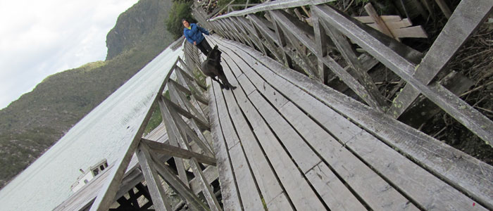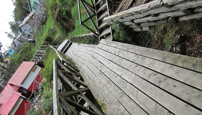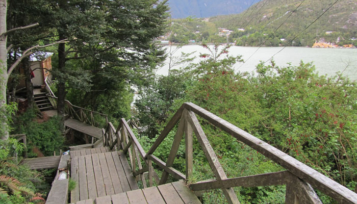 と、べた褒めのトルテルなんですが・・・正直、チャリダーには厳しい町。というのも、町の中心に行くのに、当然橋道を通っていかねばならないのですが、この橋道、平坦じゃないんです。というより、丘の上にある入り口から、湖岸沿いにある町に降りるのに、急な階段道となっているんです。一応、入り口近くに宿もあるんですが、ちと高い。安い宿に泊まろうと思ったら、階段の橋道を自転車を担いで降りねばならない・・・