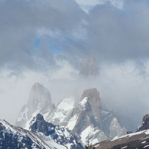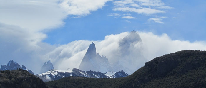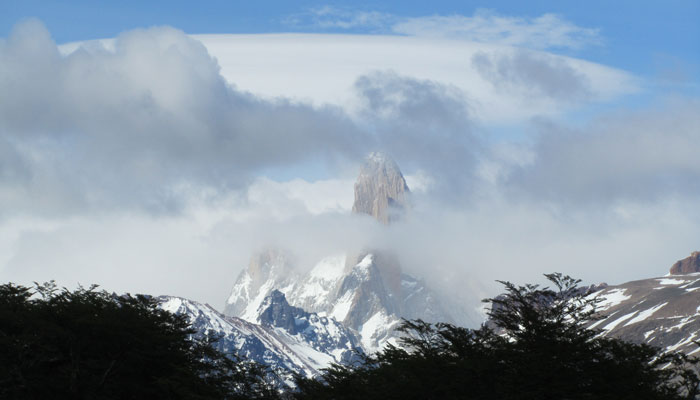 エル・チャルテンに到着する手前頃には、完全に山の姿を拝める状態になっていた。「あれがフィッツロイか!」雲の切れ間から見えた花崗岩の岩肌は、やはり思ったとおりフィッツロイの山肌であった。山の後ろに広がるパタゴニア南部大雪原から発生する雲のせいで、全貌意の姿を拝むのが難しいというフィッツロイ。うむむ、噂どおりでした。エル・チャルテンに到着し、宿にチェックインした後、シャワーを浴びて外に出てみると、再び雲隠れしてしまったフィッツロイ。見れるときにガッツリ拝んでおかないと・・・さっき見た姿が最後の姿でしたなんて悲しすぎるぞ。