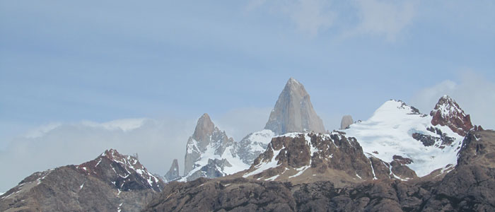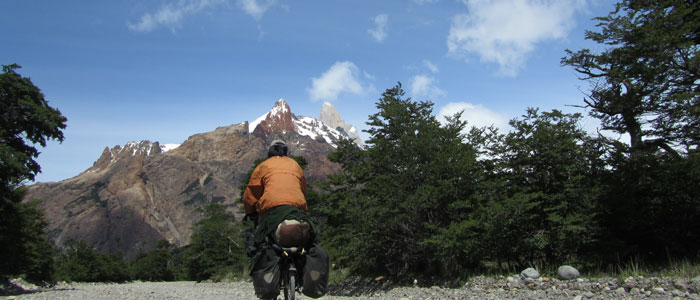 パスタをつくり、腹ごしらえをして出発。いつもより遅めの出発時間だが、本日の目的地であるエル・チャルテンまでは40km弱の距離。まぁノンビリ走っても、夕刻前には辿り着ける。途中途中でアングルを変え、見えてくるフィッツロイらしき山を拝みながら、自転車を進める。と、ここで見えているのはフィッツロイ<らしき>山。いくつかの山々が連なっているこの辺の山群、どれがどの山なのか、まだ把握しきれていないオイラとしては、「多分、あれじゃねぇのか?」という不確かな勘で判断しているだけ。フィッツロイだと思って、ありがたく拝んできた山が実は違う山でしたというオチになってもおかしくない。