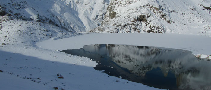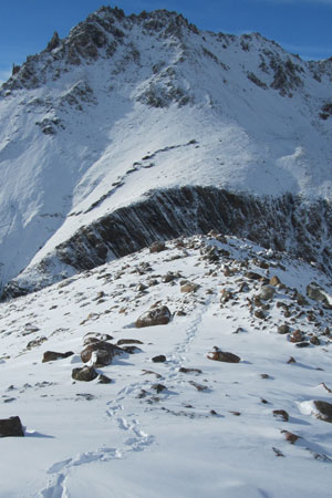 しばらく湖周辺を散策した後、下山開始。途中、オイラ踏み固めてきた道を辿って上ってくる老夫婦に遭遇。すんません、一番乗りはオイラがいただいちゃいまして・・・