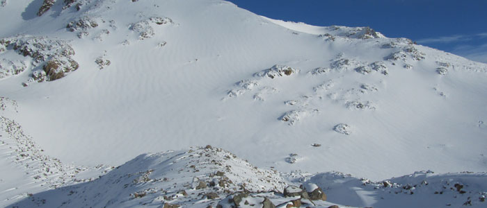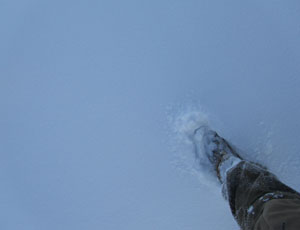 もう、大満足デス。昨日一昨日のテント待ちの不満をすべて払拭するこの貴重な体験。そうか、<誰も到達していない世界へ一番初めに到達する感覚>とはこういうものなのか。すでに誰かが道しるべをつけてくれている道を歩くのは、確かに楽だ。が、そこにはすでに誰かの痕跡があり、すでに人間の世界へと変貌した場所なのだ。他の皆が諦め、あるいは馬鹿にして足を踏み入れていない道。そこを進むのは、不安であり、やっかいであり、面倒であるのだが、辿り着く先は、今まで誰も訪れたことのない、非人間の世界=神の領域。そこには、一番最初に辿り着いたものだけが感じ取ることができる、かすかな神の匂いがある、ということを知った。この感覚を体に刻み込めるのは、なんという幸せなことであろうか。