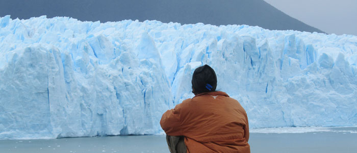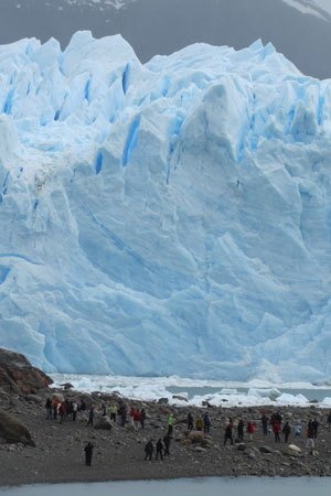 船が来るまでの待ち時間、目の前にそびえるペリト・モレノ氷河を眺めながら過ごす。と、突然、ものすごい大音響とともに、目の前の氷河が崩れ落ちた。最後にペリト・モレノ氷河がくれた最高のプレゼント、今まで見た一番でかい大崩落でしたぜい。