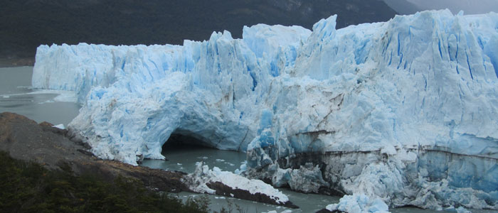 この氷河、ちょうど先端部がアーチのようになって、岸とつながっているのが、面白い。このアーチの部分の一部が崩れ落ちる崩落を見ることもできた。ちなみに、以前、このアーチ部分全部が崩れ落ちるという大崩落があったらしい。その後、同じようにまたアーチが出来ているというのだから、自然の造形技術は素晴らしいですな。