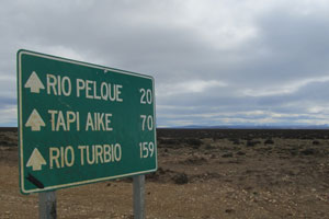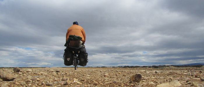広大に広がるパンパに、一筋だけ伸びる砂利道。その殺伐とした空間を孤独に走る一台の自転車。そんなルート40のイメージをここで疑似体験できるのでは、と、ちょっとした冒険心が湧いていたのだが・・・確かに、殺伐とした何もない空間が広がっており、そこを淡々と走っていくことになった。が・・・なんか、ワクワクしてこない。この気持ちが盛り上がらない原因は、天気が微妙だということが関係しているのだろうか?エル・チャルテンを出発した日に見た、あの青空と雲がここに広がっていたら、もっと気持ちが違っていたかもしれない。そんな感じで、ちょいとテンション低めの未舗装パンパ激走、だんだん、殺風景な風景にも飽きてきてしまった。う~ん、ルート40を走っていても、こんな気分になっていたのかなぁ・・・