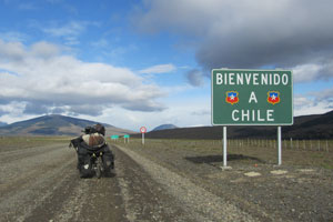 さて、昨日とは一転、青空がのぞくいい天気の中、チリへ向かう。セロ・カスティージョという町(あのセントラル・パタゴニアにある名峰セロ・カスティージョの麓にある町とは違う町)の入り口にあったイミグレに入り、入国手続き。心配していた食料検査はまったくされず。というか、荷物検査すらなかった。うむむ、これなら、もっと大事に食べればよかったなぁ、昨日のハム&チーズ。いつもなら、4食分くらいに分けて食べる量を、一回で食べちゃったんだもん・・・