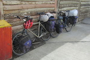 まぁ、食べてしまったものはしょうがない。んでもって、今手元にある食料は、パンとスナック菓子のみ。朝、食べたけど、パンだけじゃ、パワーがでない。ということで、イミグレの隣にあった、カフェテリアで、腹ごしらえをしていくことに。自転車を止めようと、カフェに近づいたところで、夫婦チャリダーに出会った。お二人は、これから、自転車でパイネ国立公園を走るという。むむ、パイネ、自転車で巡れるのか。だったら、オイラも自転車で行ってみようかな、と興味が沸き、お二人に予定しているパイネルートについて説明してもらった。どうやら、自転車で巡るのは、バスが通る道路のみ。遠方からパイネの山々を眺めるだけで、彼らは、トレッキングはせずに戻ってくるとのことだった。パイネでは、トレッキングを楽しみにしていたオイラとしては、そのサイクリングはビミョー。まぁ、自転車で行って、自転車はどこかに止めさせてもらい、トレッキングするという手も考えられるのだが、トレッキングだけで10日くらい歩き回るのに、そんなに自転車で頑張んなくてもいいし・・・