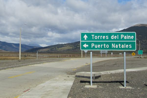 パイネ国立公園は、ここ、セロ・カスティージョの町から北に100kmほど行ったところに、ある。セロ・カスティージョに荷物や自転車をおかせてもらって、トレッキングにでかけるということも考えたのだが・・・この町は非常に物価が高そう。腹ごしらえのためにと頼んだハンバーガーが一個4000ペソもするんだもん。一食ならしょうがないと割り切れるが、トレッキングのため10日分くらいの食料を仕入れねばならないとなると話は別。だったら、一旦大きな町に行って準備するのが得策でしょう。南に60km強行ったところに、プエルト・ナタレスという町がある。パイネ国立公園に挑むトレッカーたちが拠点とする町だ。南に下り、パイネとは反対方向に行くことになるのだが、オイラも、一旦、プエルト・ナタレスに行ってから、パイネトレッキング準備をしようと決めた。