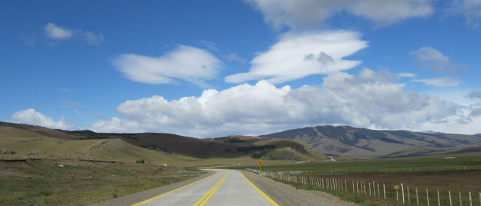 暗雲も、小雨を撒き散らした後、消え去り、再び青空に。途中、分岐道があり、右折すると、<クエバ・デル・ミロドン>という、古代生物ミロドンの骨が見つかった洞窟に続く道があった。この洞窟には興味があり、行ってみようと思っていたのだが、この分岐道、未舗装道路になっていて、しかも、この道の先は、明らかに雨が降っていると思われる雨雲地帯。うぬぬ、今日、ムリしていくことはないか・・・と判断し、このまま、プエルト・ナタレスへ向かうことに。