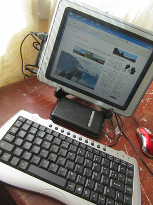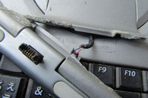 という嫌な音。オイラが使っているHPのTC1100、これ、キーボードのギミックが素敵なタブレットPCなんですが、旅で使っているうちに、キーボードのヒンジの部分にひび割れが生じていたんですよ。で、瞬間接着剤などを駆使しながら、なんとか使っていたんですが、今日、完全に逝ってしまいました。単純に折れたんなら、まだよかったんですが、折れた弾みで、コネクタの線まで、切れてしまいまして。接続して、キーボードを叩いても、ウンともスンともいわなくなってしまった。一応ラインは見えているので、半田があれば再生も可能だったんですが・・・半田を探すのも大変そうだったんで、ここは、もう、大幅リニューアルすることにしたんです。