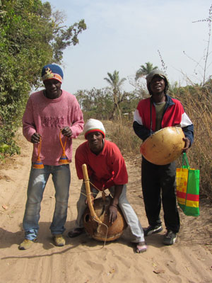 ちなみに、弦のついている亀みたいな楽器、これ、ボロンって言うらしい。そして、オイラがカシシと呼んでいるマラカスみたいな楽器は、ここセネガルではカシネって言うらしい。で、もう一人が持っていた楽器は、ダカールでお土産屋のお兄ちゃんが演奏してくれた鍵盤つき打楽器のボンゴ。そんな楽器で、素敵な演奏をしてくれた3人に500CFAのチップを渡して別れる。