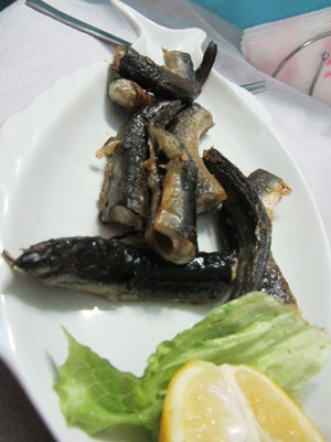で、出てきたのが・・・小ぶりなうなぎをぶつ切りにしたものを、軽く揚げたものだった。味付けは、お好みでレモンを絞ってくださいと、レモンが添えられてあるのだが、基本的には塩がふってあるだけ。