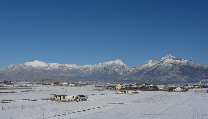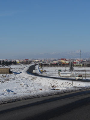次に、レストランと宿に裏切られた。シュコドラまでは、幹線道路脇にいくつもレストランやホテルが並んでいたんですよ。が、シュコドラを過ぎたら、レストランもホテルも、一気になくなってしまったのだ。それまで見なかった雪が、シュコドラを過ぎたあたりから、目に付くようになり、ちょっと走っていたら、周囲は雪で真っ白な世界に突入することになってしまいまして。ここから先は、人が住むには厳しすぎる環境なんだろうか?シュコドラまではそれなりに栄えていた感じのあったアルバニアだったのに、シュコドラを過ぎたら、閑散としてしまった。ということで、せっかく使おうと思っていたアルバニアのお金も、結局使う場所がないまま、国境まで辿り着いてしまうことになりまして。