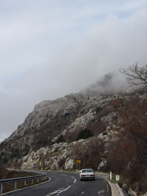 さて、こんな感じで、12月中旬のこの時期には、北海道の札幌とほぼ同緯度にあるヨーロッパの山の中は、もう雪で覆われているのだが・・・ガイドブックによると、一山越えたところにあるアドリア海沿岸部は、地中海性気候のため、年中比較的温暖らしい。ということで、もう、こりごりの雪ゾーンからは脱出して、モンテネグロの沿岸部のブドヴァというビーチリゾート町に行くことに。
