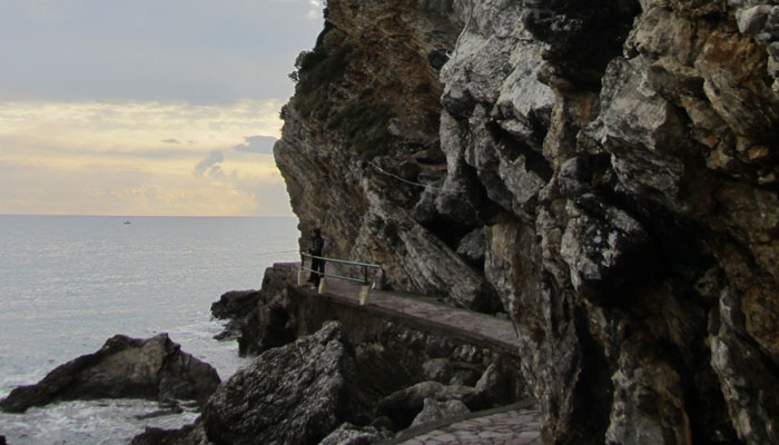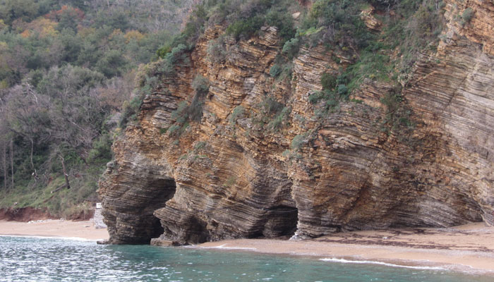 オススメされた旧市街が雰囲気があっていいかんじだったのだが、オイラ的には、その旧市街の奥にあったビーチに大興奮。ここのビーチ沿いが岩場が崖のようになっており、層状のむき出しの奇岩が素敵過ぎて。う~ん、雪ゾーンから逃れるために来てみたビーチ町だけど、ブドヴァ、なかなかいい所じゃないですか。