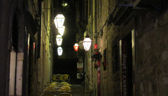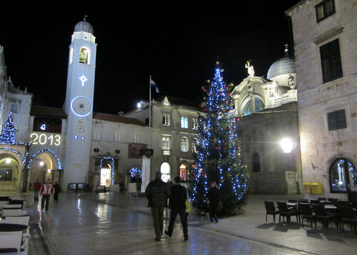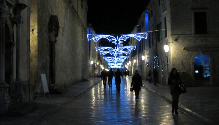 スルジ山に登った疲労が相当きていたため、しばらく海沿いのベンチに座って、どうして、こんなに透明度の高い海を保っていられるんだろうか、なんて、ボーっとこの素敵な海を眺めながら、考えていたのだが、さすがに、この時期、ジッとして外で海を眺めるには寒すぎた。冷たい風が体を攻撃してくるので、このままでは風邪をひくと、思い、一旦宿に戻って、シエスタタイムをとることに。で、日が暮れた後、再び旧市街へ。夜の旧市街は、クリスマスが近いということもあり、素敵なイルミネーションで彩られていた。<2013>と描かれたライトデザインを見て、そうか、もうすぐ年越しか・・・とシミジミ思う、オイラだったのでした。