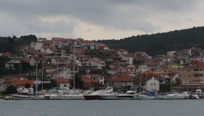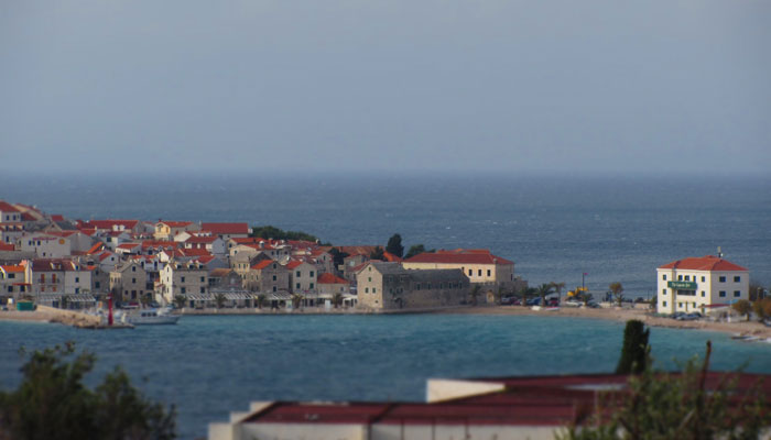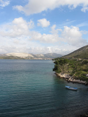 スプリットの街を抜けた後は、また海岸道に。ここも、アップダウンはさほど激しくなく、しばらく走りやすい海岸道が続いた。それにしても、このアドリア海の風景は、確かに美しいんだけど・・・同じような海岸風景が続くんで、正直、だんだん、見飽きてくる。しかも、今日はあまり天気がよくないので、余計に、目に飛び込んでくる風景に心が動かない。