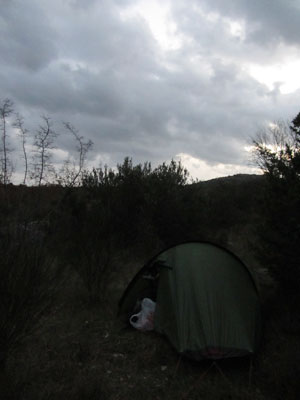 さて、持っている楽器を一通り演奏し終えたら、もう22時過ぎになっていた。そろそろ眠くなってきたので、寝はじめようとしたら・・・雷が鳴り出し、あっという間に土砂降りに。ふおお、テント泊の日に、雷つきの豪雨はカンベンしてくれよぉ・・・テント内は水漏れしはじめ、寝てる場合じゃなくなってくるし・・・ああ、やっぱり、アドリア海は夏がベストです。夏以外の季節は、天気が不安定すぎますわ。