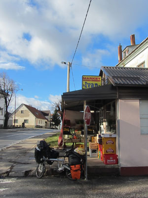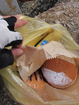 さて、走り始めて、しばらくしたら、小さな町に到着した。一応食料は持っていたのだが、どうせ、今晩も野宿になるだろうから、なるべく手持ちの食材は夜の分にとっておきたい。それに、せっかく町に辿り着いたのだから、なにか暖かいものが食べたい・・・と思ったのだが、ここも、ファーストフードとかレストランらしき場所は全て閉まっていた。「オフシーズンとはいえ、町の人が食べに来たりしないのかいな」と疑問に思うも、開いていないものは開いていない。開いているところといえば、ミニスーパーだけ。しょうがないので、ミニスーパーで、バナナと菓子パンを購入。あ~、もっとパワーになるものが食べたいんだけどなぁ・・・