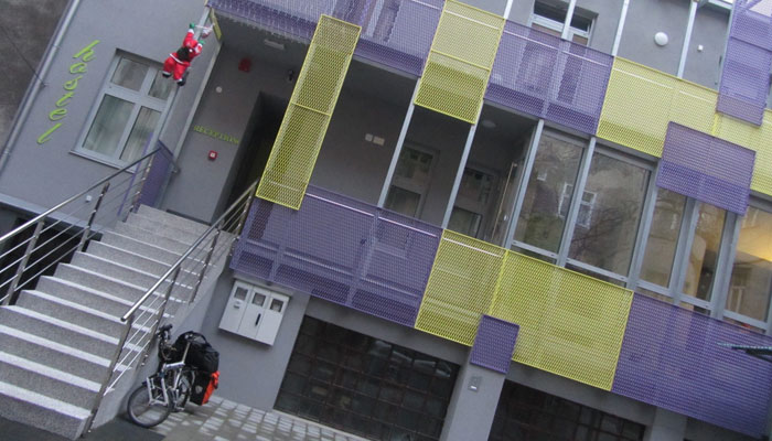 一応、宿はガイドブックで目処をつけていたんだけど、途中で目に付いたホステルが、すごくいい感じのところだったので、そこにチェックインすることに。オイラとしては、使いやすそうなキッチンと、作業しやすそうなリビングが気に入ったので、決めたんだけど、ココ、全体的にいい感じ。出来たばかりなのか、中は小奇麗で、細かいところまで、センスが効いている。