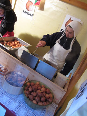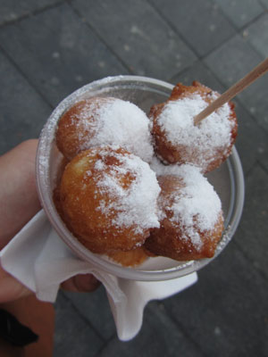 さて、歩いていたらちょっと小腹が空いてきたので、<Fritule>という揚げドーナツなお菓子を屋台で買ってみた。これ、中がモチモチしてて、めっちゃ美味い。ちなみに、今回オイラは、カップに入れてくれたドーナツに、白砂糖を振り掛けてもらったのだが、他にもチョコレートとかトッピングはいろいろあるみたい。