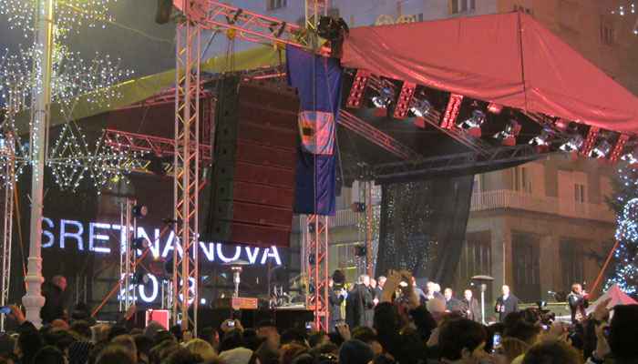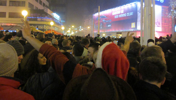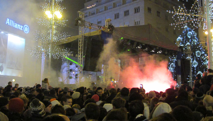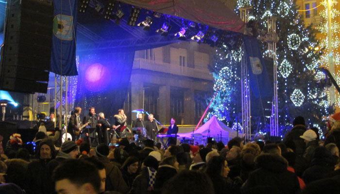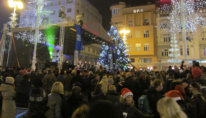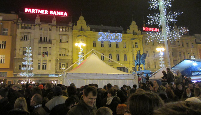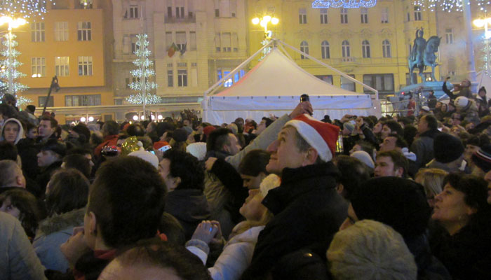 しかし・・・このカウントダウンの直後は、イェラチッチ広場は、身動きできないくらい人で埋め尽くされていた。もう、寒いし、眠いんで、カウントダウンが終わったらすぐに宿に戻りたかったんですけど・・・も、戻れない・・・