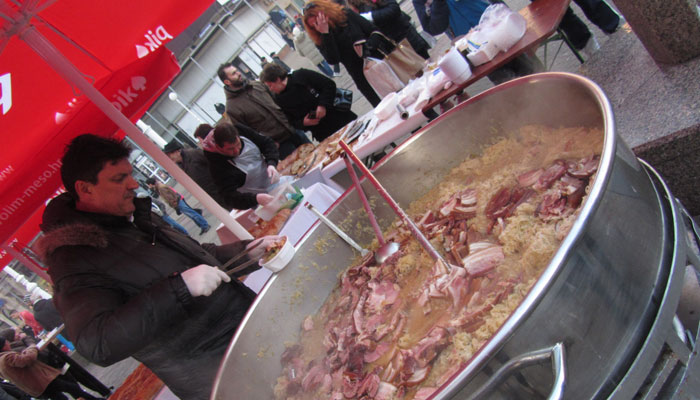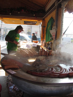 さてさて、オイラは、一番人で賑わっているイェラチッチ広場へ。ここには、デッカイステージが組まれており、オイラ好みのロックなバンドが、演奏を繰り広げていたのだ。しばらく、演奏を楽しんでいたのだが・・・とにかく、寒い。夜になって、さらに、寒さが増している。これは、なにか暖かいモノでも体に入れないと、耐えられないと思ったオイラは、屋台ゾーンへ移動。