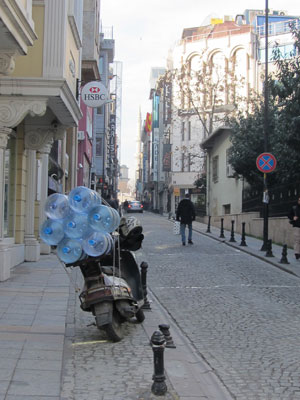 で、病院からの帰りも、観光気分で、ブラブラ散歩。適当に道を歩いていたら、いつのまにやら、グランバザールというお土産ストリートに迷い込んでしまった。ここ、日本人観光客がよく来る場所らしく、歩いていると、あちこちから日本語で声をかけられた。まぁ、そういう場所には慣れている二人なんで、「コンニチハ」とか「カラスミ、ウッテルヨ」と日本語で誘い言葉をかけられても、わざわざ振り向いたりしないオイラとサカタさんだったのだが・・・そんな二人が、思わず乗せられてしまった<かけ言葉>があった。それは、「オチマシタヨ」という日本語。歩いていると、トルコ人のお店のおじさんが「オチマシタヨ」と声かけてくるのだ。で、「オチマシタヨ」と言われると、何も落としたつもりはないのだが、思わず振り向いてしまう。で、振り向いたオイラたちに「ジョーダン、ジョーダン。ジュウタン、カワナイ?」と、商談をもちかけてくるという、この巧妙な手口。何度も言われて、冗談だと分かっているのだが、「オチマシタヨ」と言われると、なんとなく体が反応してしまうのが悔しい。それにしても気を引くキッカケの言葉として、「オチマシタヨ」という日本語とは・・・日本人ならほぼ99%反応してしまうだろう。いい言葉を見つけたものだ、トルコの商人。