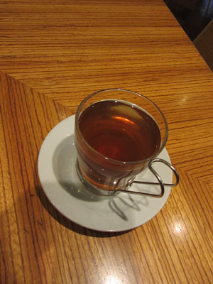 そんなカフェで、メニューを見てたら、<アップルティー>を発見。このアップルティー、リョウイチくんが「トルコといえば、アップルティー。ヨシさん、アップルティーって飲みました?」と言ってたやつじゃないですか。ものは試しと、アップルティーをオーダーしてみたところ・・・これが、めちゃウマ。普通のお茶にほのかなアップルフレーバーがするくらいかな、と想像していたのですが、いやいや、どちらかといえば、アップルジュースに、ティーフレーバーがする、くらいなお味。こんなにアップルが濃ゆいアップルティーは、初めて飲んだ。
