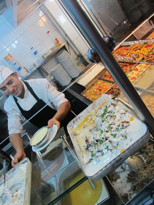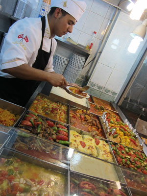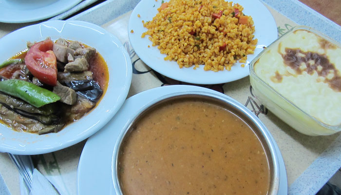 さて、この<ロカンタ>、大抵、店先に惣菜がズラリと並べられているので分かりやすい。店に入って、好きな惣菜を指定して皿に盛ってもらう。美味しそうなものが並んでいるので、テンションあがって、ついついいっぱい頼んでしまうのが困った点だが、まぁ、頼みすぎてもそんなに財布は痛まない。メインのおかずと、ライスと、スープと、デザートと、フルコースで頼んでしまっったのに、これでも10.50トルコリラ。日本円にして、500円ってとこ。う~ん、安い。