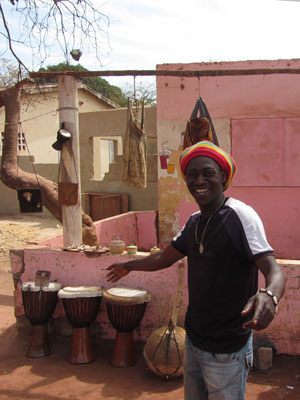しょうがないので、飯は後にして、まず、宿であるカサ・ディ・マンシャに向かうことに。で、途中にディザン師匠の家があったはずなので、そこへ行ってみたところ・・・誰もいない。キョロキョロしていたら、「何か?」と一人の男の人が声をかけてきた。「えっと・・・」と説明しようと思ったところ「あ、キミは、昨年ディザンにジャンベを習っていたジャパニーズだね。ディザンはココを出ちゃったんだよ。今は別の人が住んでいるんだ」とのこと。