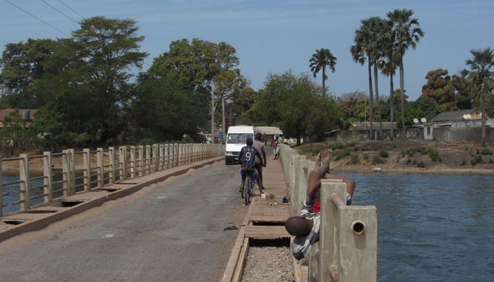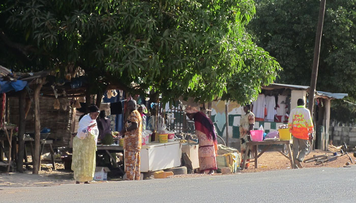 バイラの宿を出発し、いよいよカフォンティンに向かって走り始めようとしたのだが、まだ朝飯を食べていない。ということで、メイン道路沿いにあるサンドイッチ屋台で朝食を済ませることに。セネガル人が集う中、入り込み、フランスパンにミドリ豆をつぶしたペーストを挟んでもらう。セネガルでは、このサンドイッチ+カフェトゥバってのが、朝の定番メニュー。場合によっては夕飯もこれで済ませることがある。パン、具ともに美味いので、このサンドイッチには全然飽きがこない。