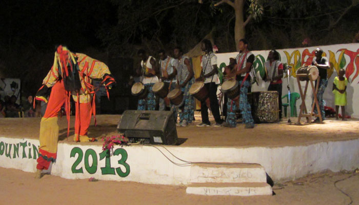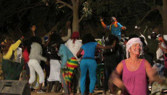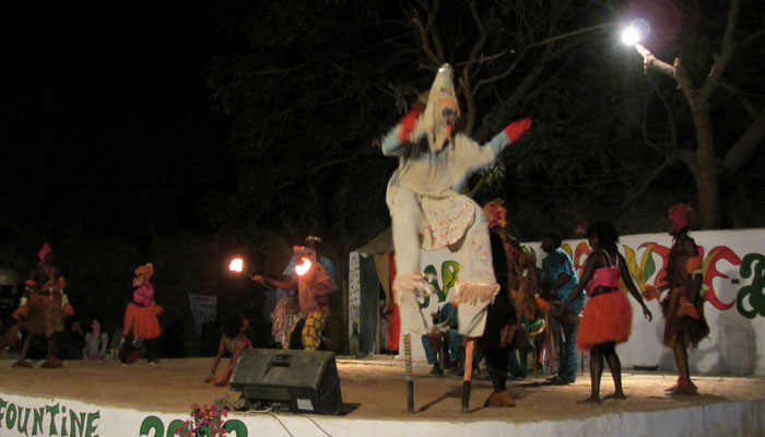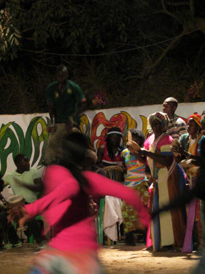 これらのキャラに乗せられて、客がヒートアップ。舞台に次々と登り、踊り始める観客。うむむ、セネガルの人は、客といえども、皆さん、超一流のダンスを踊れる人たちばかりですから。ステージ上は、客といえども、エンターテイメント。そして、ひとしきり踊ったら、ちゃんと舞台から降りるというルールが出来ているためか、ステージ上にも混乱はない。