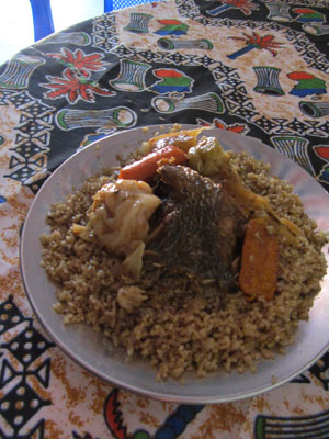 そんな、カーニバルは夜からですから。日が出ている時間は基本的に暇。朝10時くらいに起きて、村へ出る。カフェでサンドイッチを食べつつ、ネット。その後、昼飯。村の真ん中にあるレストランで、久々にチェブジェンを食べる。やはり美味い。腹を満たした後、宿に戻って、アサラトとかカホンで遊んで、昼寝。こんな感じで日中はダラダラ生活。