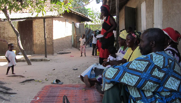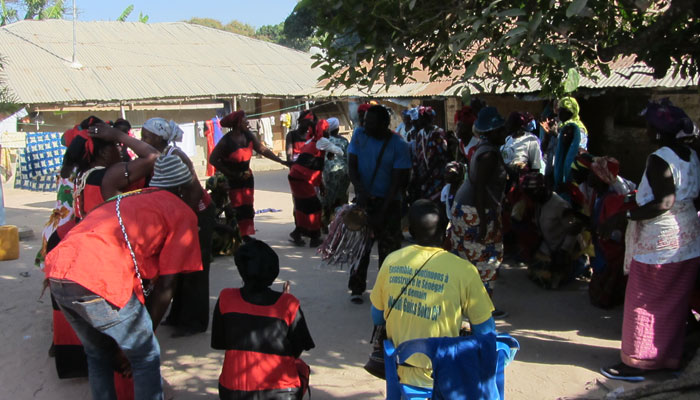 さて、チャリと荷物を部屋に置き、村を散策していたら、どこからともなく、太鼓の音がしてきた。その音に誘われて、足をむけてみると・・・やってました、おばちゃんたちの集い。ソルバのリズムに合わせて、踊りまくるおばちゃんたちの姿を、もっと見せてもらおうと中に入っていったら、「あんたも踊りなさいよ」と輪の中にひきずりこまれてしまいまして・・・うむむ、とりあえず、前回イラ師匠に教わっていたジャンベダンスのステップを思い出し、なんとか、その場をやりすごす(実は、ジャンベダンスとソルバダンスは全然ステップが違うのだが、まぁその辺は適当に応用させまして)。ふ~、とりあえず、ダンスも習っといてよかったよ。