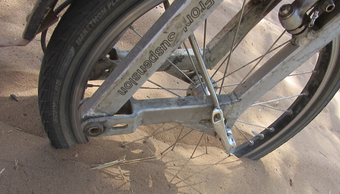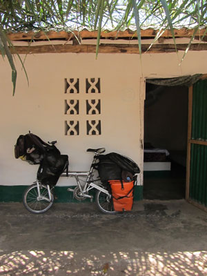 久々にファニーバニーに荷物を装着し、カンパメントを出る。ジプソンは居なかったんだけど、宿のおばちゃん、そして、イラに挨拶して、カサ・ディ・マンシャを後にするオイラ。自転車では大変な砂道を通り、ようやく村のメイン通りに。そこで、お土産屋のお兄ちゃん、カフェのお兄ちゃんに出会い、別れの挨拶。挨拶するたびに、なんか悲しい気持ちになっちゃうから、出来れば、人知れず去りたいところなんですけど・・・そうはいかない、カフォンティン。ああ、嬉しくもあり、悲しくもある。