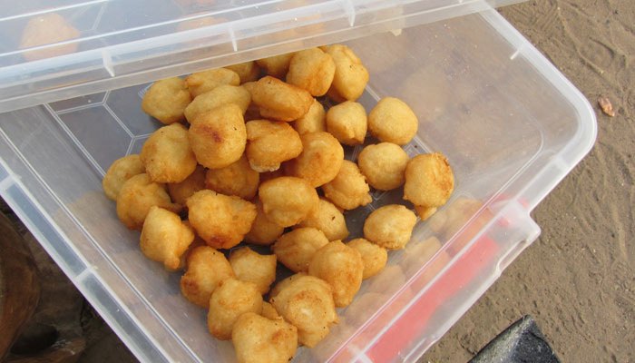 昨日、朝飯を食べに行ったおばちゃんが、作っているモノについていろいろ教えてくれるので、今日も朝からお邪魔しに。しかし、いろいろ教えてくれるものの、肝心の言葉がよく分からないので、せっかく教えてくれているというのに、半分も理解できていない。うむむ、もったいない。