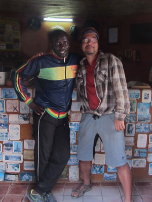 と言って一人のセネガル人が握手を求めてきた。見れば、なんと、ジギ師匠ではないですか!ふおお、お久しぶり、ってことで、フランス語で会話を試みたのだが、あれっ?全然通じない・・・オイラのフランス語がまだまだなのか、と一瞬思ったのだが、そうではなく、ジギ師匠は、基本的にウォルフ語しか話していなかったということが判明。ということで、宿のパジさんに通訳になってもらって、ジギ師匠と再会話で盛り上がる。