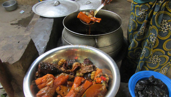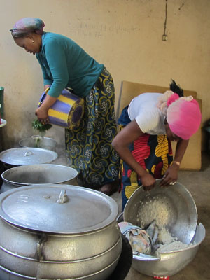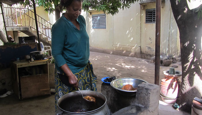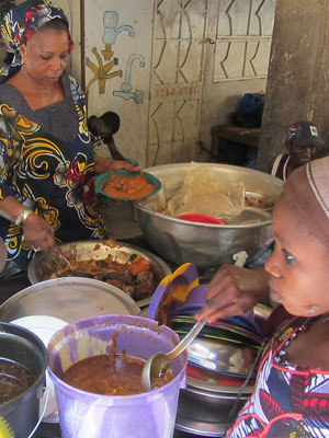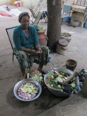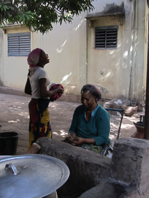 バマコで滞在している宿ラフィア。ここには、セネガル人のアワ姉さんが居まして。ボクムさんとどういうご関係なのか・・・まぁ、そこは詮索することなく、とにかく、ココに住んでいるアワ姉さん、ランチタイムに市場で食事処を展開するため、毎朝、中庭で料理を作っているのですよ。