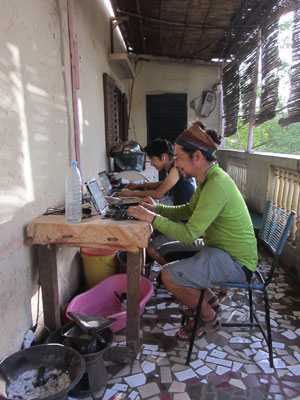 ということで、今日もパソコンを開くつもりはなかったのだが、昨日に引き続いて始まった山口トモトモ夫婦とのおしゃべりの流れから、お互いのHPを見せ合うことになりまして。幸い、今日は珍しく昼間に停電することなく電気が通っているので・・・この宿では、ネットはつながらないのだが、お互いパソコンを持ち出し、ローカルのハードディスクに入れてある編集元のサイトのデータをみてもらうことに。