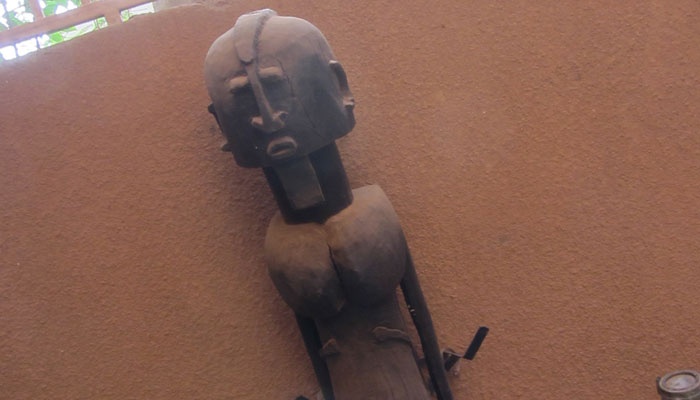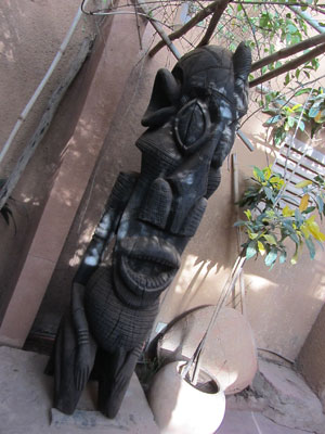 仮面の国ドゴン・・・ということなのか、昨晩泊まった宿には、興味深い<仮面>をかたどった置物がいくつも飾られていた。この造形はなかなかワクワクさせてくれる。おお、そうだ、ひょっとしたら宿のおじちゃんが、ドゴンダンス情報を持っているかもしれない、と思い、「ドゴンダンスは、どこへ行ったら見れるんですか?」と聞いたところ、バンディアガラという町に行けば見れる可能性があるよ、とのことを教えてもらいまして。