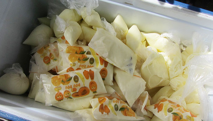 そうそう、これこれ、<ヨーグルトアイス>。ヨーグルトを凍らせているだけなんですけど、めっさ美味しい。最初に食べたのが、バマコで・・・Lafiaの近くの物売りオネエサンが、なぜか不定期に、しかも夕刻だけ売っていたんで、見つけたらいつも即買いしていたんです。