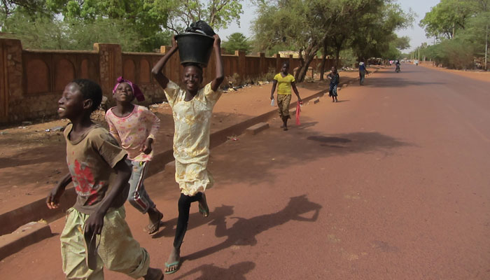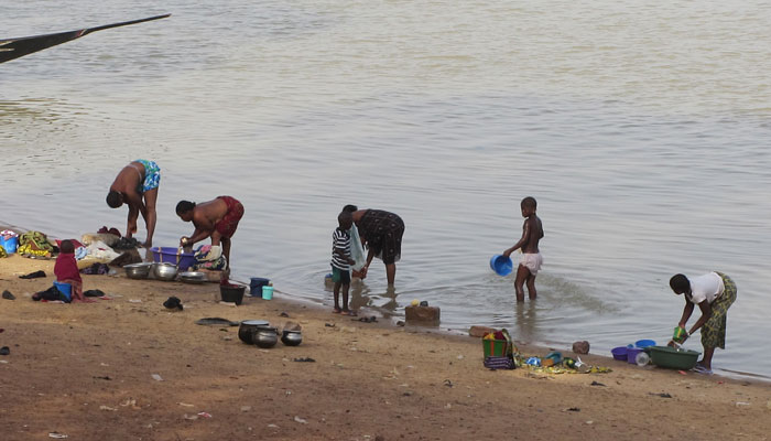 ニジェール川沿いにあるモプティの町、走っていると、食器洗いやら洗濯やら水浴びやらと、素敵な朝の風景が見える。