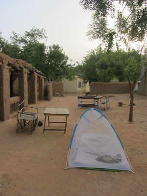 いやぁ、蚊帳テントが大活躍。この時期に西アフリカ旅を旅する人は、蚊帳テントは必須でっせ。これがないと、夜眠れませぬ。