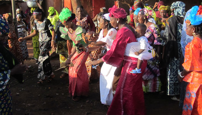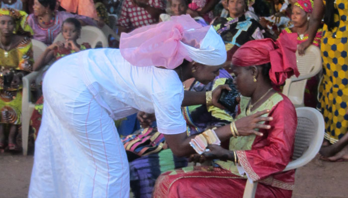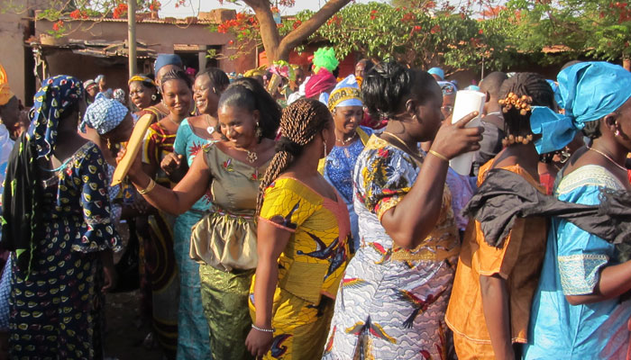 ちなみに、この女祭り、結婚披露宴的なセレモニーとのこと。西アフリカのこういう場って、必ず、女の人たちばっかりなんですよねぇ。この場に加わる男性は、演奏者だけってのは、なぜなんでしょうか・・・と思っていたところ、このタイミングで新郎はモスク内でトラディショナルな方式に従って式を挙げていて、男性はそちらに参列しているもんなんだと、トゥグマニ師匠が教えてくれた。うむむ、結婚式なのに、新郎と新婦が別々とは・・・