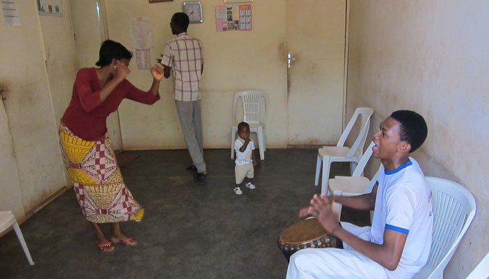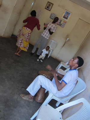 で、辿り着いた太鼓の音の発生元は・・・とある家の中でして。あまりに素敵な太鼓のリズムだったんで、思わず、ドアをノックして、中を覗かせてもらったんです。すると・・・ご家族がダンス中だった。オイラが顔をのぞかせても、太鼓は止まることはないし、踊りも中断することはないほど、皆さんノリノリ。「入っていいですか?」とジェスチャーで聞いて、ジャンベフォラのお兄さんが「うん」とうなずいてくれたので、ずうずうしくもお邪魔することに。