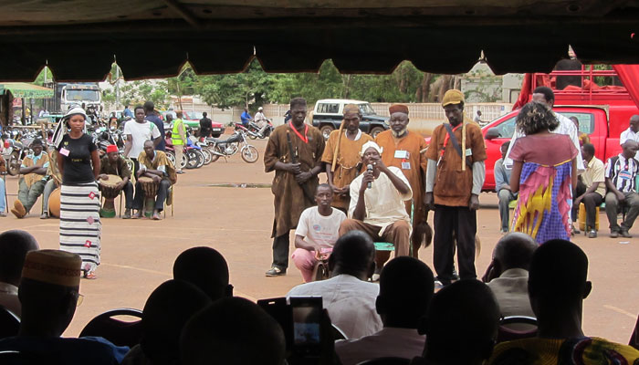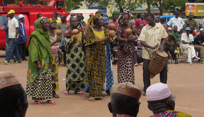 結局、6グループくらいのミュージシャン達が、それぞれの独自の伝統音楽を披露してくれまして。うむむ、オイラの頭の中では、「ブルキナ音楽ってこんな感じ」とジャンル分けして整理したいって気持ちがあったのだが・・・やっぱり、ブルキナ音楽も多彩。とても、一くくりにはできないですわ、ハイ。