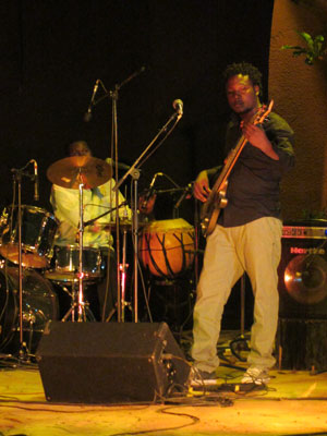 さて、今日も、気分転換にと、<Institute Fransais>で行われるというライブを見に行くことに。今日は、ジャズ・プログラムと題して、いくつかのジャズバンドがステージ演奏するらしい。ジャズ・・・といっても、アフリカでのジャズは、いわゆるアメリカやヨーロッパのジャズとはちと違う。楽器はアフリカの伝統楽器を使っているし、メロディはアフリカ流なので、奏でる曲は、ジャズのカホリがちょっとするアフリカの曲って感じ。