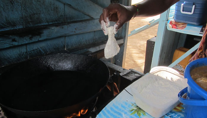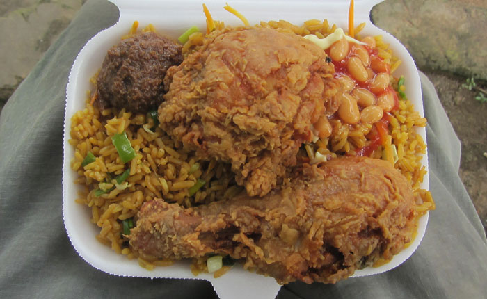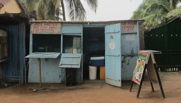 ということで、すっかり<ライスマスター>の唐揚げに胃袋を掴まれてしまったオイラは、昼飯も、夜飯も、<ライスマスター>の唐揚げ定食を食べるために、通い詰め。いや、マジ美味い。こんなに美味しいのに、値段は他の店と同じ、唐揚げ一つあたり1.5セディ。いやぁ、他の店で、それなりの唐揚げを同じ値段で食べるのがバカバカしくなっちゃいます。