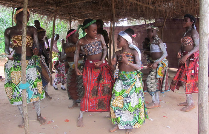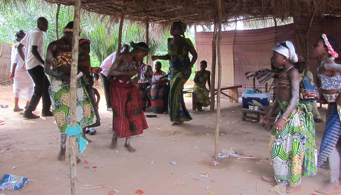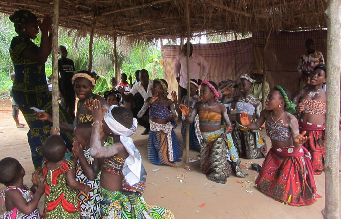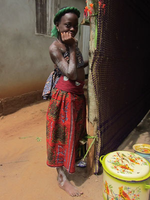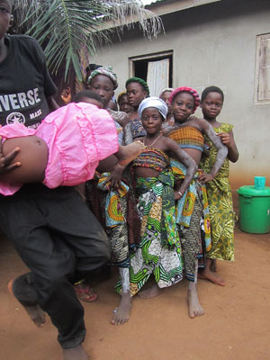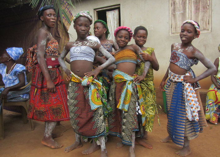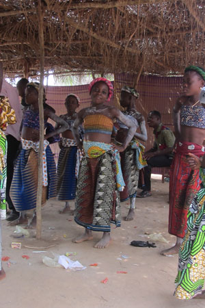 そして、太鼓に合わせて、きれいな衣装を着て、腕や首周りに白化粧した女の子たちが、素敵なダンスを繰り広げ始めた。お~、この白化粧した女の子たち、ガーナやトーゴのいろんなところで、写真を見る機会があって、めっちゃ気になっていたんですよ。そんな彼女たちのダンスが、生で、しかも、目の前で見れちゃうとは、なんたるラッキー。